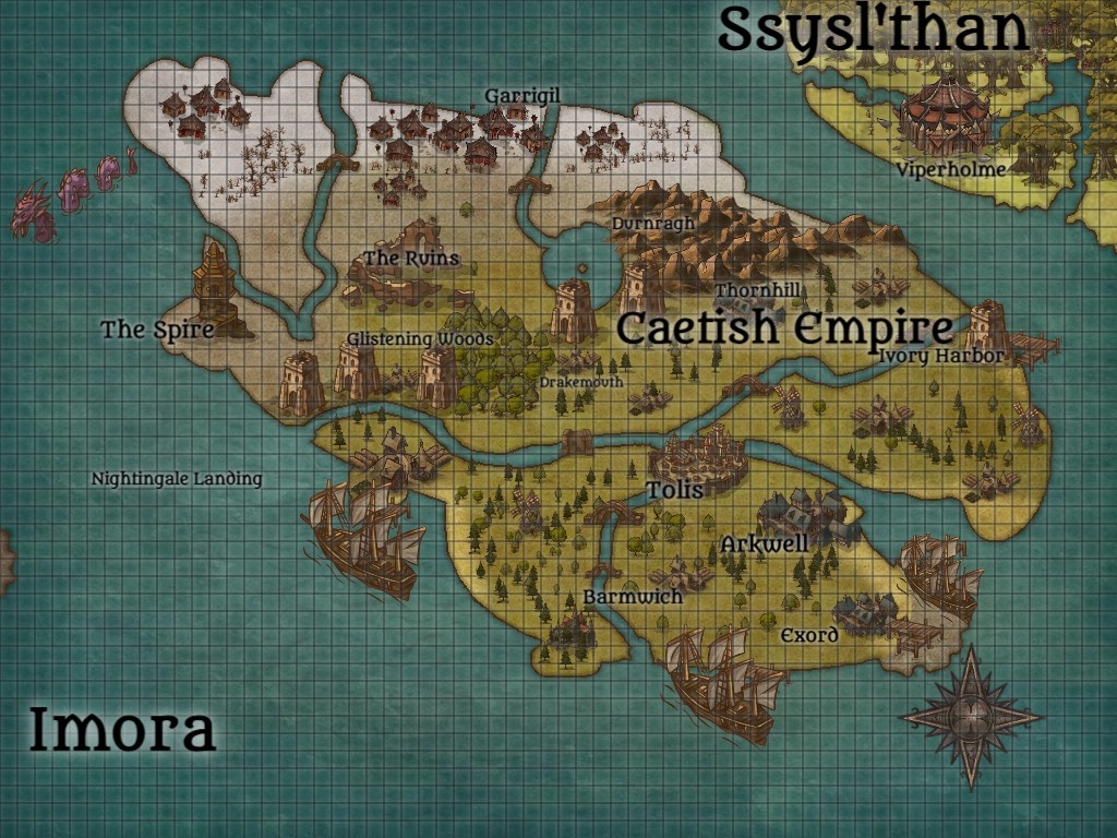 At least three of my different campaigns have begun in various towns across Imora, including in Arkwell, a major port city set just outside of the Capitol city of Tolis, Barmwich, a small town on the river, as well as Exord, which became known for the Exord Expo (and later the Arson of the Exord Expo).